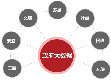 政府大数据:围绕工商、安监、交通、旅游、社保、民政、环保等委办局的业务应用,提供基于大数据政府创新应用的整体解决方案,提高政府治理能力、提升市场监管水平、加强普惠民生服务。